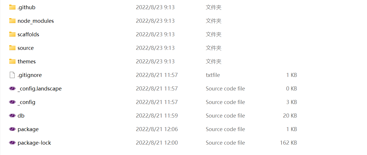 在hexo的初始文件夹,你会看到如下结构
