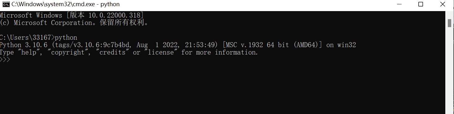 安装完成后在cmd中输入python,若出现类似一下回应,即代表安装成功: