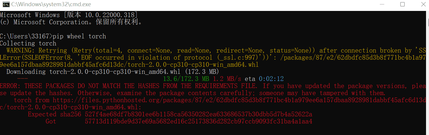 会有各种各样的报错,最后告诉你pytorch安装失败。当然如果你足够幸运,成功了,就可以跳过这一节;如果这一步失败了,那么恭喜你,获得了一个新的安装方法: