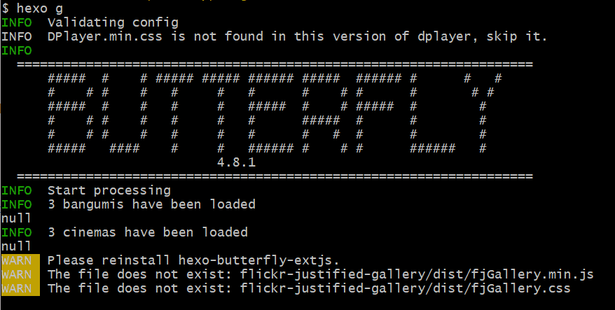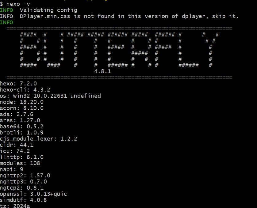 hexo -v反馈如下,就能查询当前hexo的版本了。