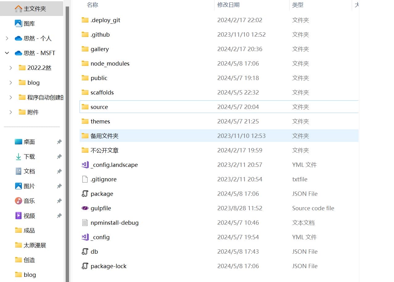 因为当时不知道,更新完hexo g的时候人就懵了,我东西呢?!不仅如此,因为文件转移了,导致真正生效的source文件夹下一篇文章都没有,主页也不能正常渲染,报404的错。