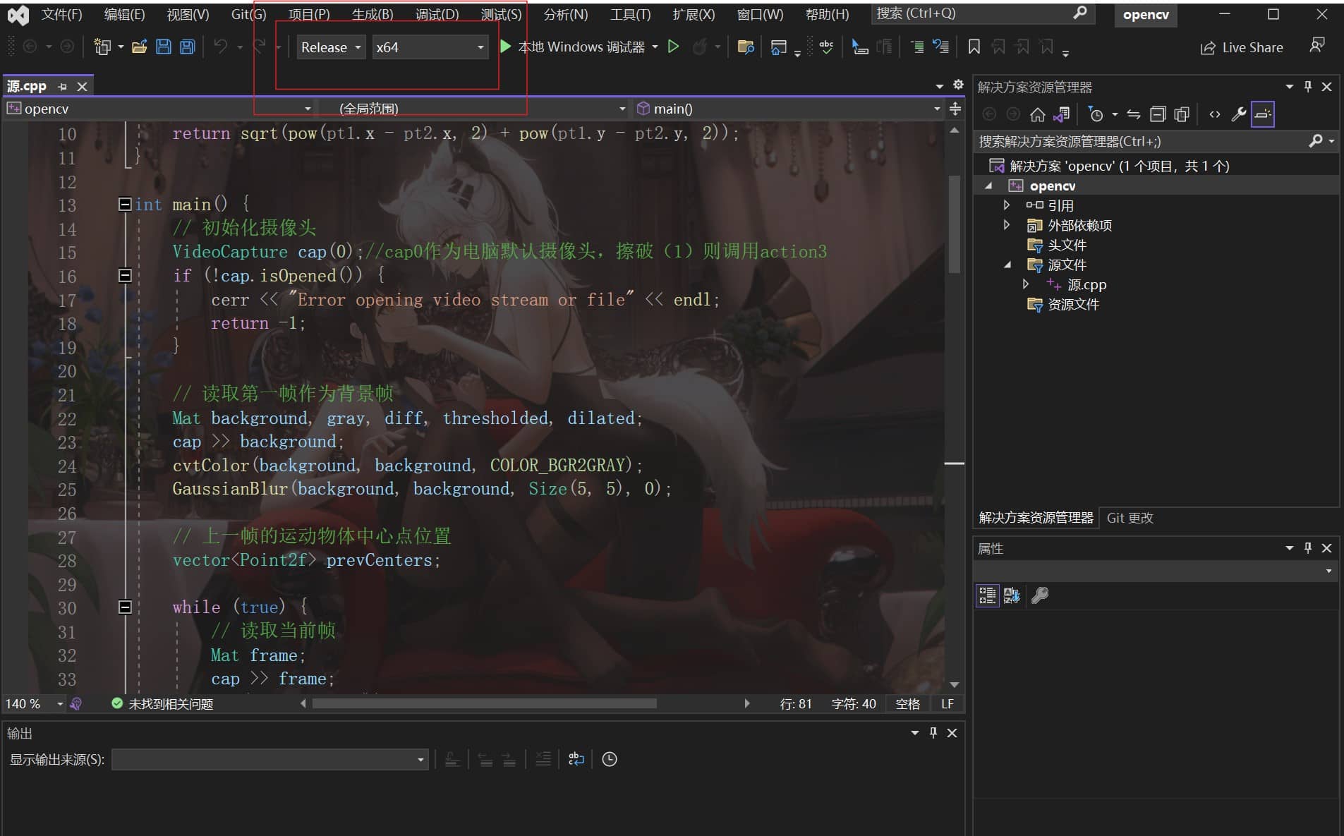 其中VideoCapture cap(0);调用的是电脑自带的默认摄像头,如果希望使用usb摄像头,可以改为VideoCapture cap(1)或者VideoCapture cap(2).