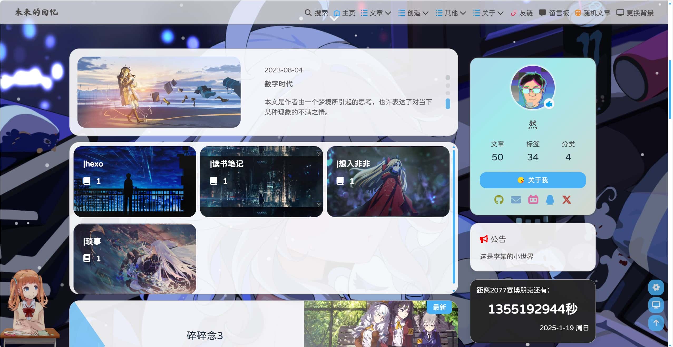 博客:2024年,写了一些博客,大部分都是些无关痛痒的东西,记录所思所想而已。统计还有就是博客版本的迭代,大规模改版(UI界面变化较大)有3到4次,然后就是各种优化调整修bug,最终有了现版本的样子。